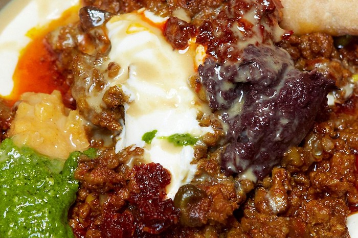 The Palomar’s shakshukit (essentially a deconstructed kebab) is a dish from Jerusalem of spiced mince meat, topped with plenty of dips including harissa, tahini, pesto, tapenade and, of course, preserved lemon. There might be quite a few ingredients in the list, but it’s totally worth it and would be a great starter to a Middle Eastern sharing menu.