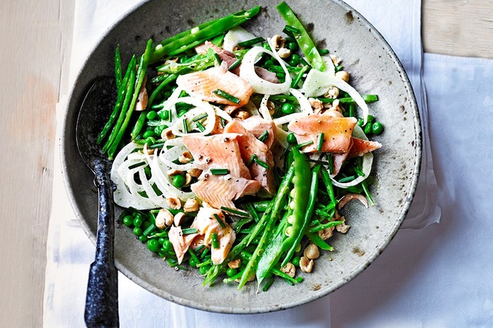 Fresh mangetout is crisp and sweet and lends great crunch to summer dishes. This recipe pairs it with pea, fennel and smoked trout, and packs in lots of big flavours. Ready in just 20 minutes, it's a light and healthy meal option.