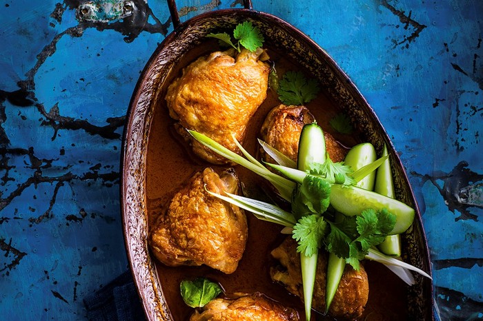 Make the condiments while the chicken cooks, and this recipe from Malaysian street food restaurant Med Salleh will be quicker than it first appears.