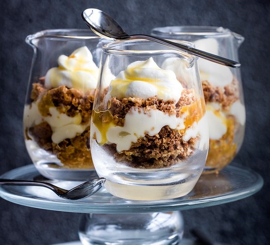This recipe for cinnamon and gooseberry crumbles is really easy to follow but they make great individual puds. Make a batch and freeze these mini dessert pots for when you need a sweet hit. Find more crumble recipes here.