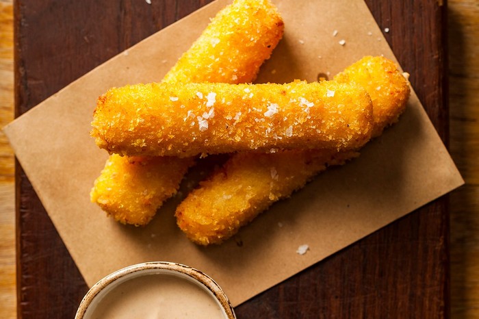 These fried cheesy polenta chips with smoked chilli and lemon come from Duck & Waffle and make a great starter