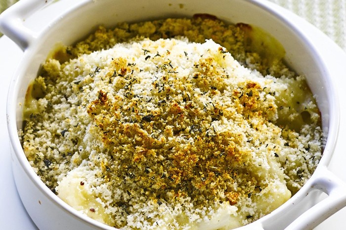 Cauliflower cheese with crunchy sage crumbs