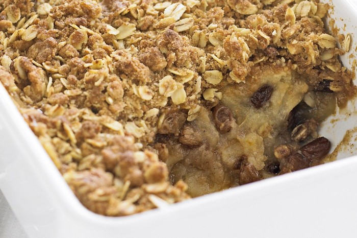 Porridge oats and soft brown sugar add extra crunch to this family favourite, that is best served with rich vanilla ice cream.