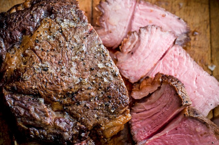 Roast beef with bone marrow crostini and horseradish sauce